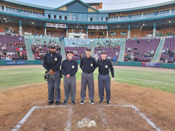 It is with a very heavy heart that IBUA announces the unexpected passing of one of its umpires, Robert Sadlak (pictured far left, with his 2025 CIF D9 Finals Crew below). We lost not only a quality umpire but a good friend in Robert. IBUA mourns this loss and sends prayers out to Robert’s Family and Friends as we come to terms with this loss.